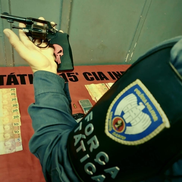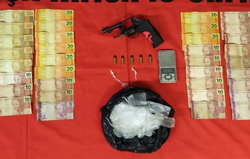 A apreensão ocorreu durante o patrulhamento de uma equipe da Força Tática no município. Ao todo foram apreendidos: um revólver calibre 32, cinco munições intactas do mesmo calibre, uma balança de precisão, quatro pedras de crack e R$ 661,00 em espécie.
