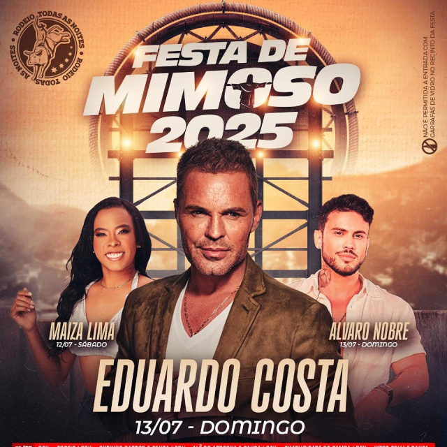 A Prefeitura de Mimoso do Sul, no Sul do Espírito Santo, divulgou nesta segunda-feira (16) a programação oficial da Festa do Município 2025. O evento acontece entre os dias 11 e 13 de julho, no Parque de Exposições da cidade, com entrada gratuita nos três dias.