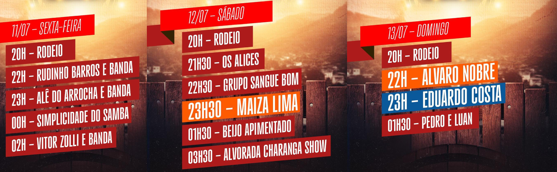 A festa contará com uma mistura de atrações nacionais e regionais, além de rodeio e outras atividades culturais.