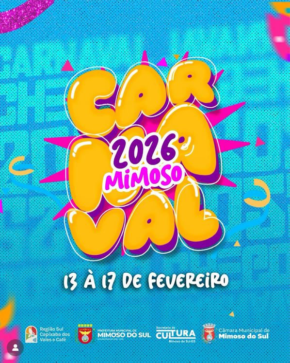 A Secretaria Municipal de Cultura de Mimoso do Sul anunciou que o Carnaval Cultural 2026, entre os dias 13 a 17 de fevereiro, será marcado pelo resgate da história. Planejado para valorizar a cultura local e fortalecer as tradições, o evento promete reunir toda a comunidade em um clima de diversão.